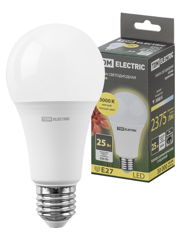 Лампа светодиодная А65 25 Вт, 230 В, 3000 К, E27 TDM | код SQ0340-0496 | TDM
