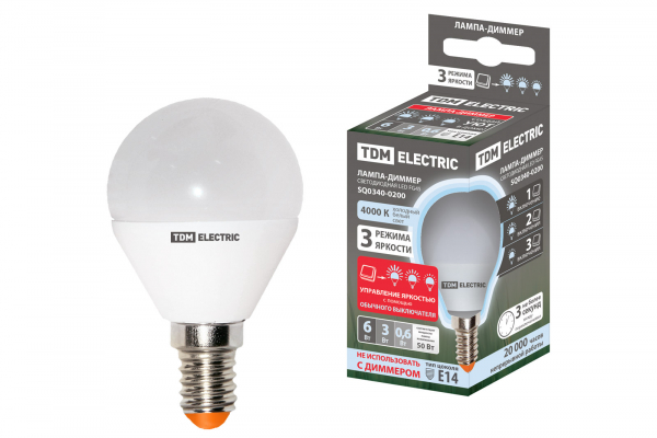Лампа светодиодная FG45-6 Вт-230 В-4000 К–E14 Лампа-ДИММЕР TDM | код SQ0340-0200 | TDM