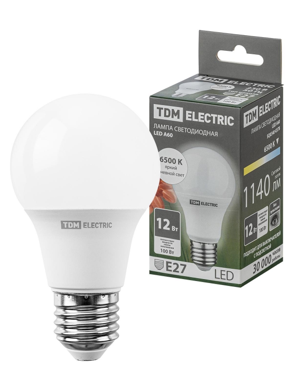 Лампа светодиодная А60 12 Вт, 230 В, 6500 К, E27 TDM | код SQ0340-0378 | TDM