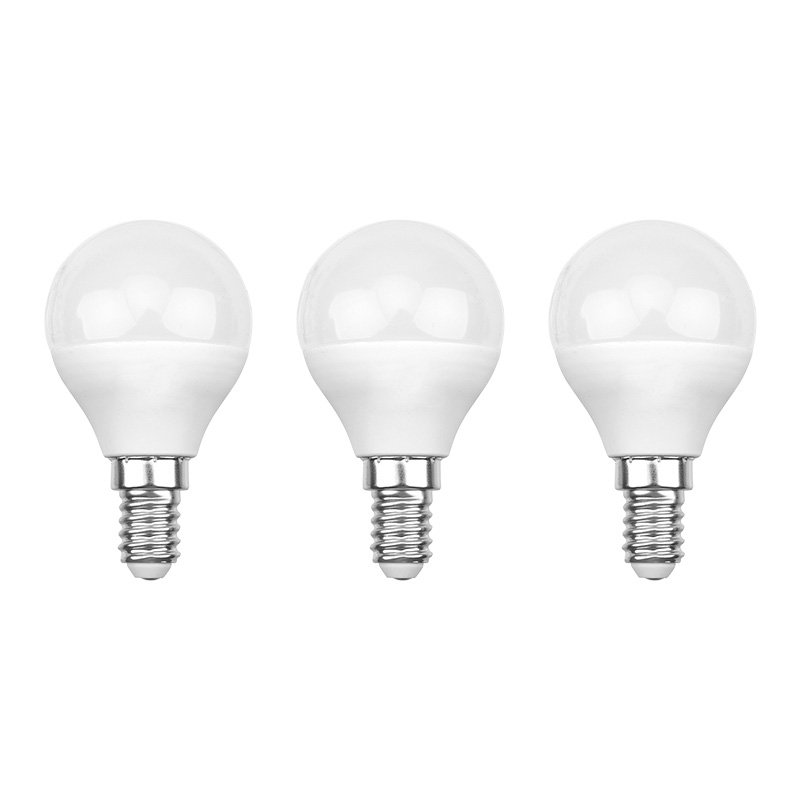 Лампа светодиодная REXANT Шарик (GL) 9.5 Вт E14 903 Лм 2700 K теплый свет (3 шт./уп.) | код 604-037-3 | REXANT