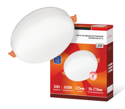 Панель светодиодная встраиваемая безрамочная RLP-FL 36Вт 230В 6500К 2520Лм 225мм с рег. монтаж. 50-210мм белая IP20 IN HOME | код 4690612036755 | IN HOME