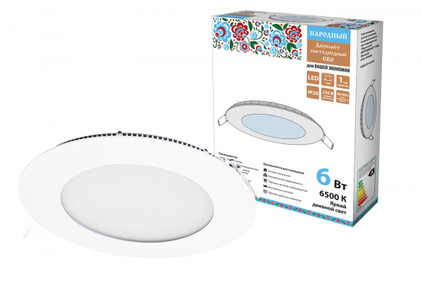 Светильник ультратонкий встраиваемый светодиодный Даунлайт НАРОДНЫЙ СВО (белый) 6 Вт 6500К | код SQ0329-0245 | TDM НАРОДНЫЙ