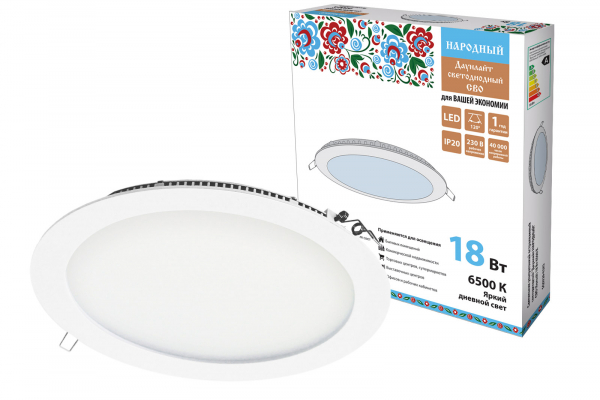 Светильник ультратонкий встраиваемый светодиодный Даунлайт НАРОДНЫЙ СВО (белый) 18 Вт 6500К | код SQ0329-0243 | TDM НАРОДНЫЙ