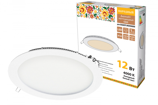 Светильник ультратонкий встраиваемый светодиодный Даунлайт НАРОДНЫЙ СВО (белый) 12 Вт 4000К | код SQ0329-0080 | TDM НАРОДНЫЙ