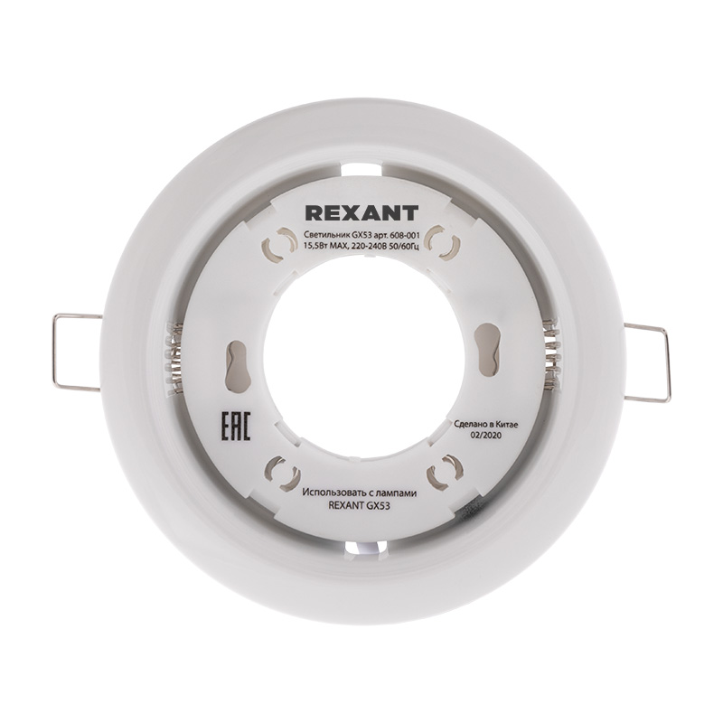 Светильник GX53 белый термостойкое пластиковое кольцо в комплекте | код 608-001 | REXANT