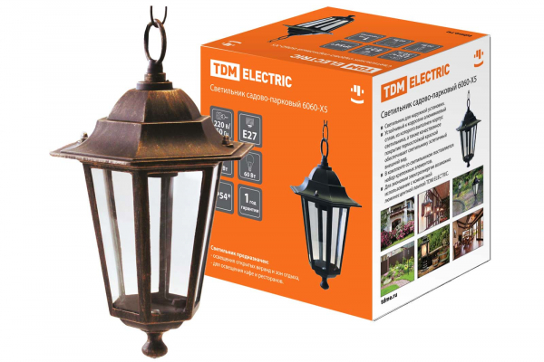 Светильник 6060-15 садово-парковый шестигранник, 60Вт, подвес, бронза TDM | код SQ0330-0015 | TDM