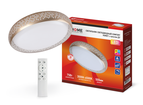 Светильник светодиодный COMFORT HONEY 75Вт 230В 3000-6500K 6000Лм 500х120мм c пультом ДУ IN HOME | код 4690612034843 | IN HOME