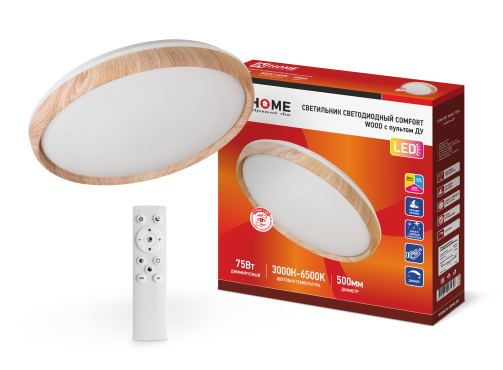 Светильник светодиодный COMFORT WOOD 75Вт 230В 3000-6500K 6000Лм 500x90мм с пультом ДУ IN HOME | код 4690612035758 | IN HOME