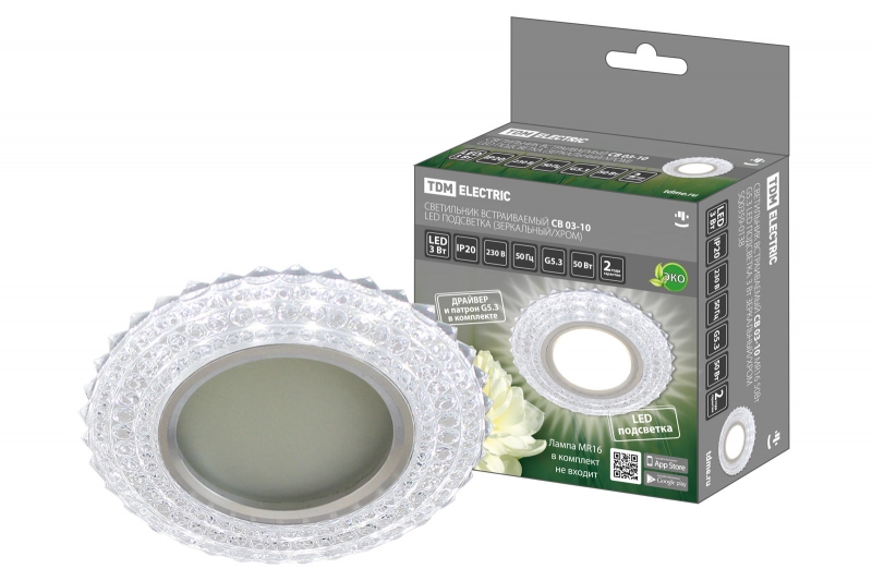 Светильник встраиваемый СВ 03-10 MR16 50Вт G5.3 LED подсветка 3 Вт зеркальный/хром TDM | код SQ0359-0138 | TDM