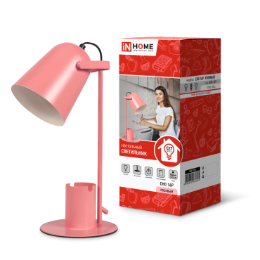 Светильник настольный под лампу СНО 16Р на основании 40Вт E27 230В с органайзером РОЗОВЫЙ (коробка) IN HOME | код 4690612035895 | IN HOME
