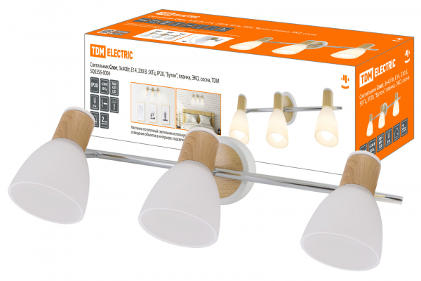 Светильник Спот, 3х40Вт, Е14, 230 В, 50 Гц, IP20, Бутон, планка, ЭКО, сосна, TDM | код SQ0356-0004 | TDM
