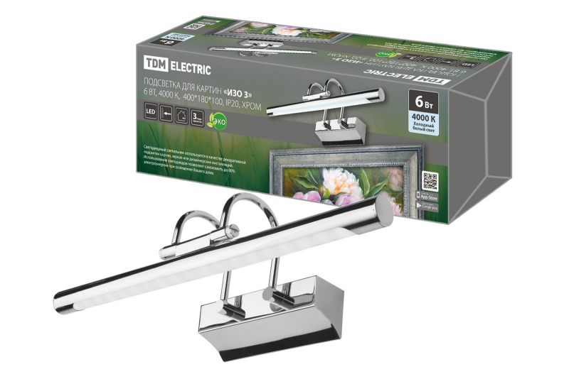 Подсветка для картин «ИЗО 3» 6 Вт, 4000 K, 400*135*115, IP20, хром, TDM | код SQ0358-0302 | TDM