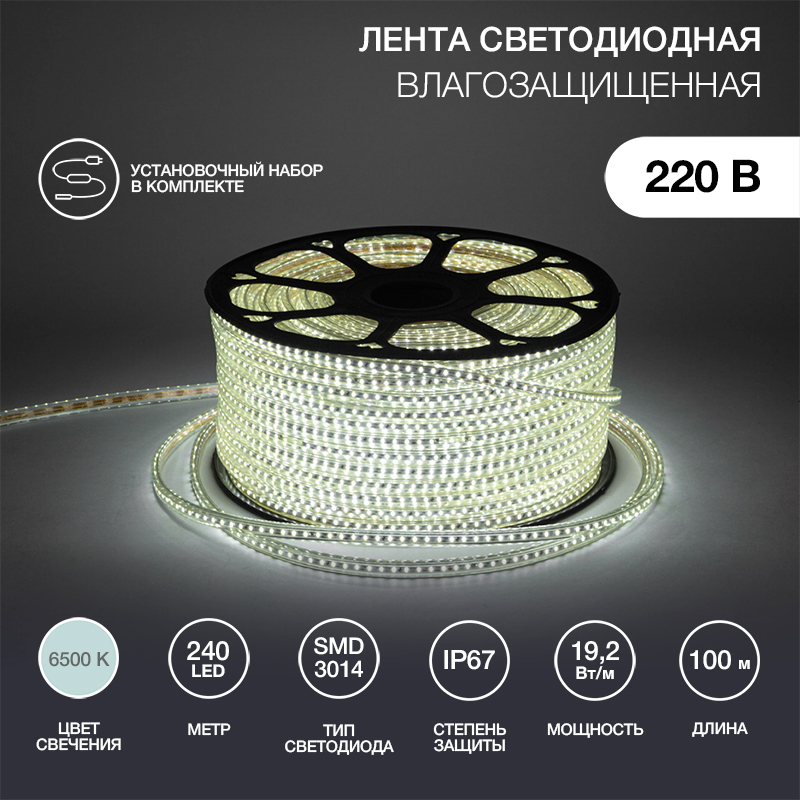 LED лента 220 В, 6x10.6 мм, IP67, SMD 3014, 120 LED/m, цвет теплый белый, 100 м | код 142-802 | NEON-NIGHT