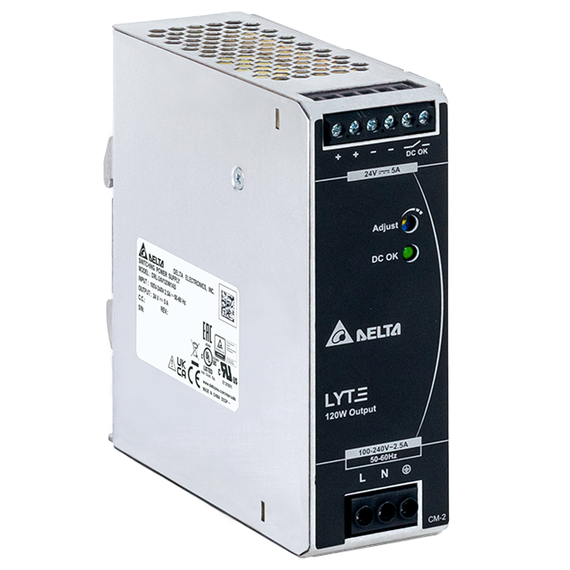 Блок питания импульсный Lyte, 120W, 5А, 85_264VAC (120_375VDC) / 24VDC, DIN35, реле DC OK, винтовые клеммы, стальной корпус | код DRL-24V120W1AS | Delta Electronics