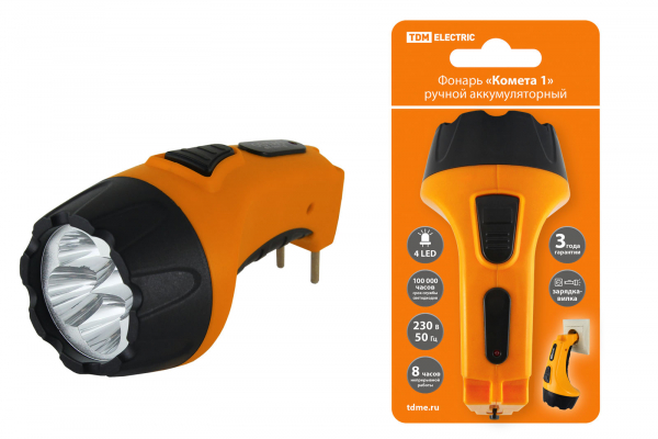 Фонарь «Комета 1» ручной аккумуляторный, 4 светодиода, 0,5Ач 230В вилка, TDM | код SQ0350-0039 | TDM