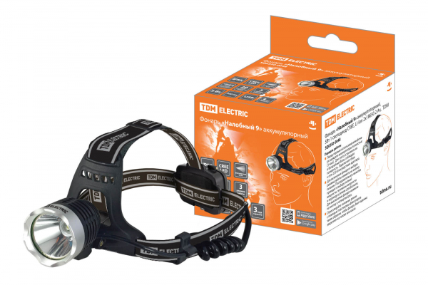 Фонарь «Налобный 9» аккумуляторный, 5Вт 1 светодиод CREE, Li-Ion 2x18650 2 Ач, TDM | код SQ0350-0048 | TDM