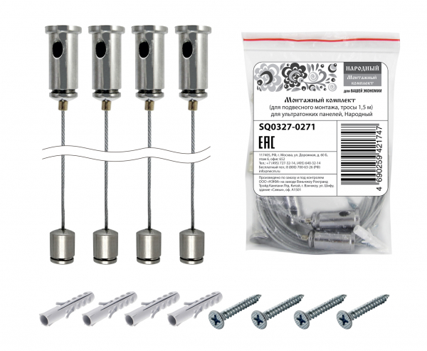 Монтажный комплект (для подвесного монтажа, тросы 1,5 м) для ультратонких панелей, Народный | код SQ0327-0271 | TDM НАРОДНЫЙ