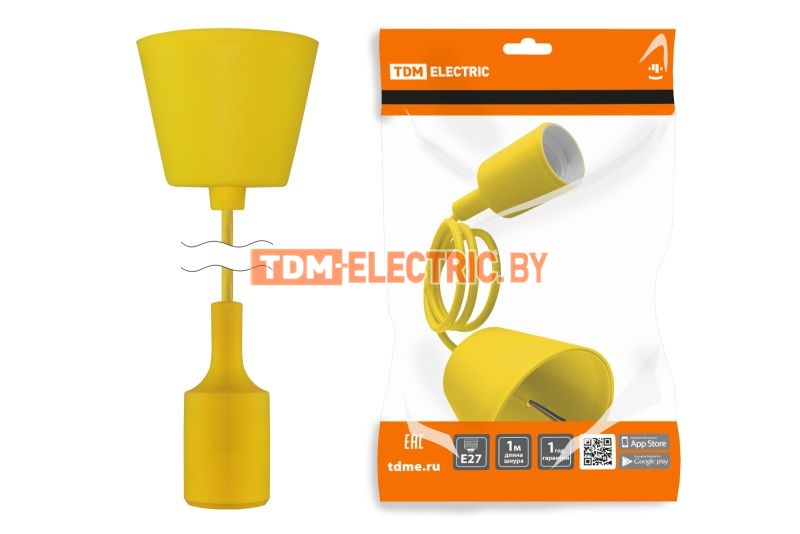 Патрон пластиковый Е27 с подвесом 1 м, желтый TDM | код SQ0335-0065 | TDM