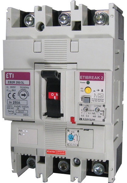 Автоматический выключатель со встроенным блоком УЗО EB2R 250/3L 160А 3Р | код 004671581 | ETI