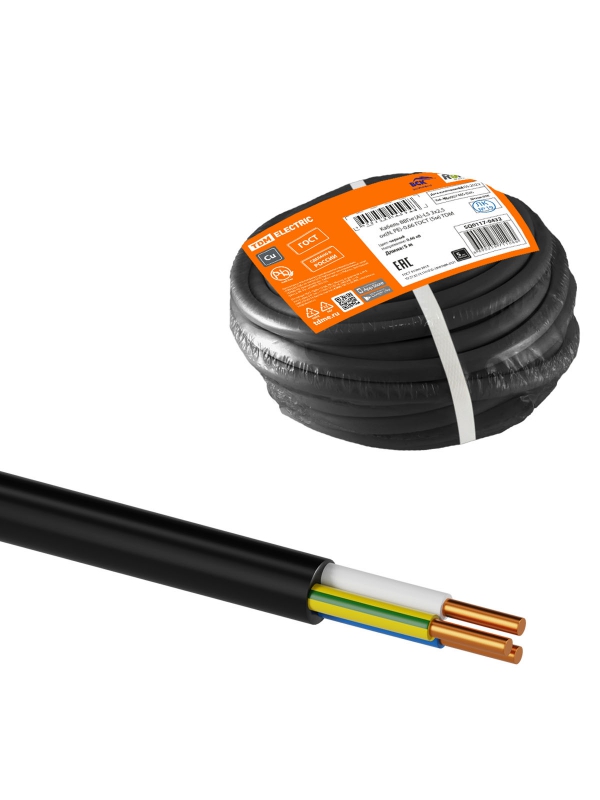 Кабель ВВГнг(А)-LS 3х2.5 ок(N. PE)-0.66 ГОСТ (бухта 50м) | код SQ0117-0448 | РЭМЗ ТМ