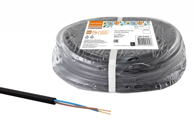 Провод ПВСмб 2х2.5 (5м) черный Народный ТРТС | код SQ0118-0520 | РЭМЗ ТМ