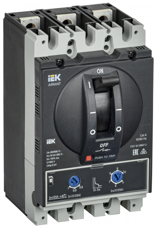 ARMAT Авт. выкл. лит. корпус 3P D 50кА 125А ТМ рег. IEK | код AR-MCCB-3D-050-0125A-ATUC | IEK