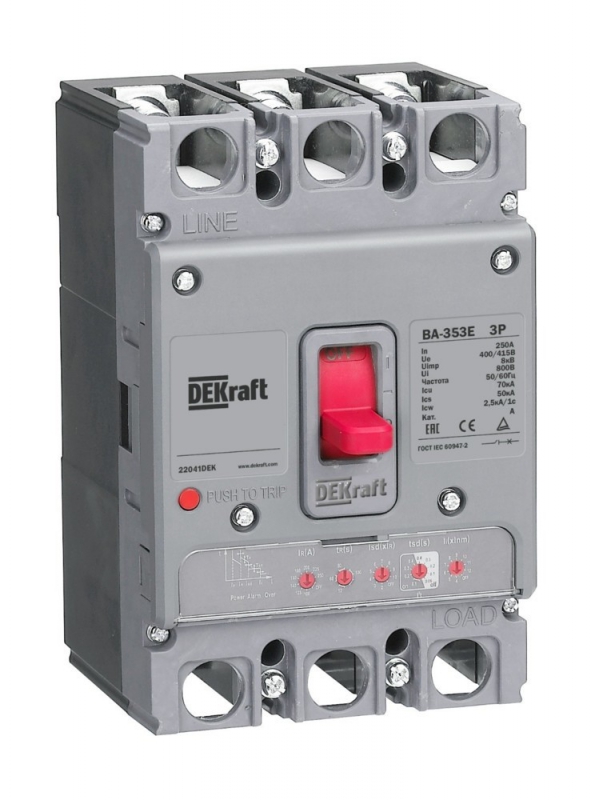 Силовой авт. выкл. с электрон. расц. 3P 160А 70кА ВА-353E | код 22663DEK | DEKraft