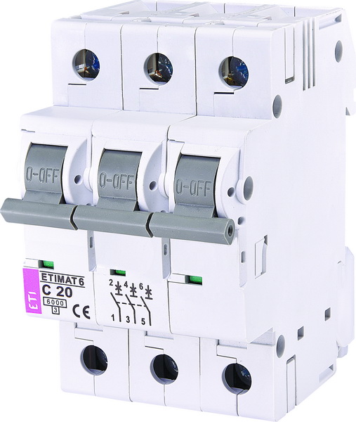 Автоматический выключатель ETIMAT 6 3p C 20А (6 kA) | код 002145517 | ETI