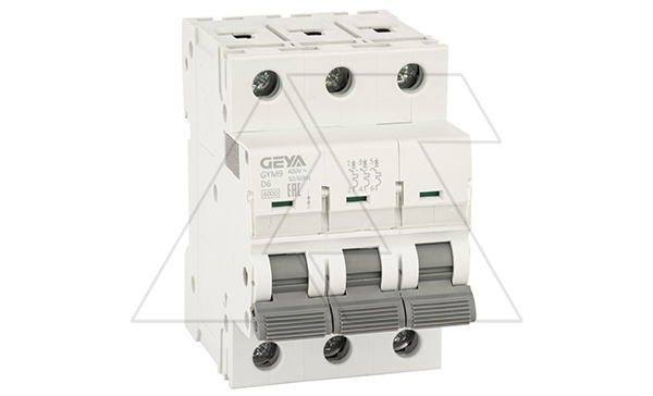 Авт. выключатель GYM9-3P-6D, 3P, 6A, хар-ка D, 6kA, 3M | код GYM93P6D | GEYA