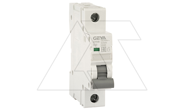 Авт. выключатель GYM8-1P-50C, 1P, 50A, хар-ка C, 4,5kA, 1M, без подкл. AU8, AL8. | код GYM81P50C_0 | GEYA