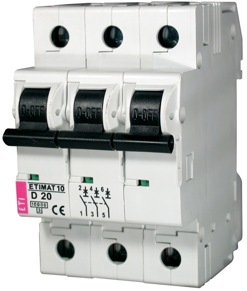 Автоматический выключатель ETIMAT 10 3p D 20А (10 kA) | код 002155717 | ETI