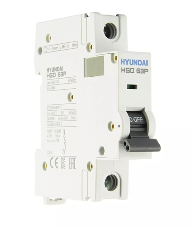 Автоматический выключатель HGD63P 1PMDS0000C 00006 1 полюс, 6А, ток к.з. 10kA, хар-ка D (STANDARD) | код 13.04.000921 | HYUNDAI