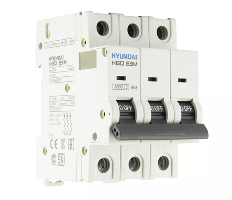 Автоматический выключатель HGD63-M 3PMBS0000C 00063 3 полюса, 63А, ток к.з. 6kA, хар-ка B (STANDARD) | код 13.04.000988 | HYUNDAI