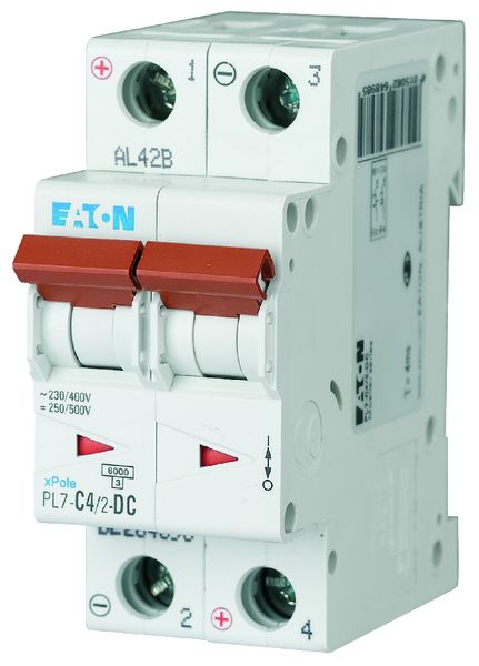 Автоматический выключатель для защиты цепей пост. тока 4А, кривая отключения C, 2 полюса, откл. способность 10 кА, PL7-C4/2-DC | код 264898 | EATON