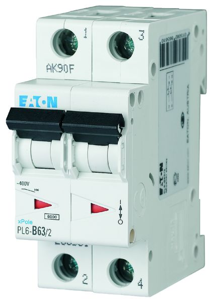 Автоматический выключатель 63А, кривая отключения С, 2 полюса, откл. способность 6 кА, PL6-C63/2 | код 286573 | EATON