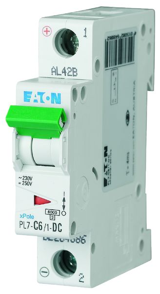Автоматический выключатель для защиты цепей пост. тока 6А, кривая отключения C, 1 полюс, откл. способность 10 кА, PL7-C6/1-DC | код 264886 | EATON