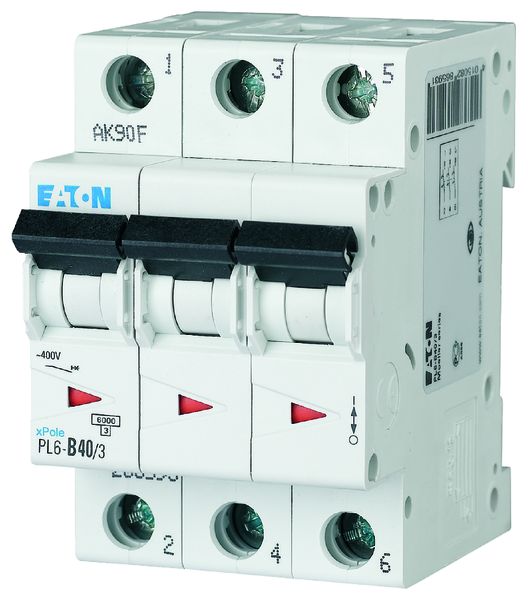 Автоматический выключатель 40А, кривая отключения B, 3 полюса, откл. способность 6 кА, PL6-B40/3 | код 286593 | EATON