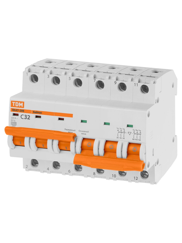 Авт. выкл. с мех. блок. (байпас) ВА47-29Б 3Р+3Р 32А 4,5кА х-ка C TDM | код SQ0206-0410 | TDM