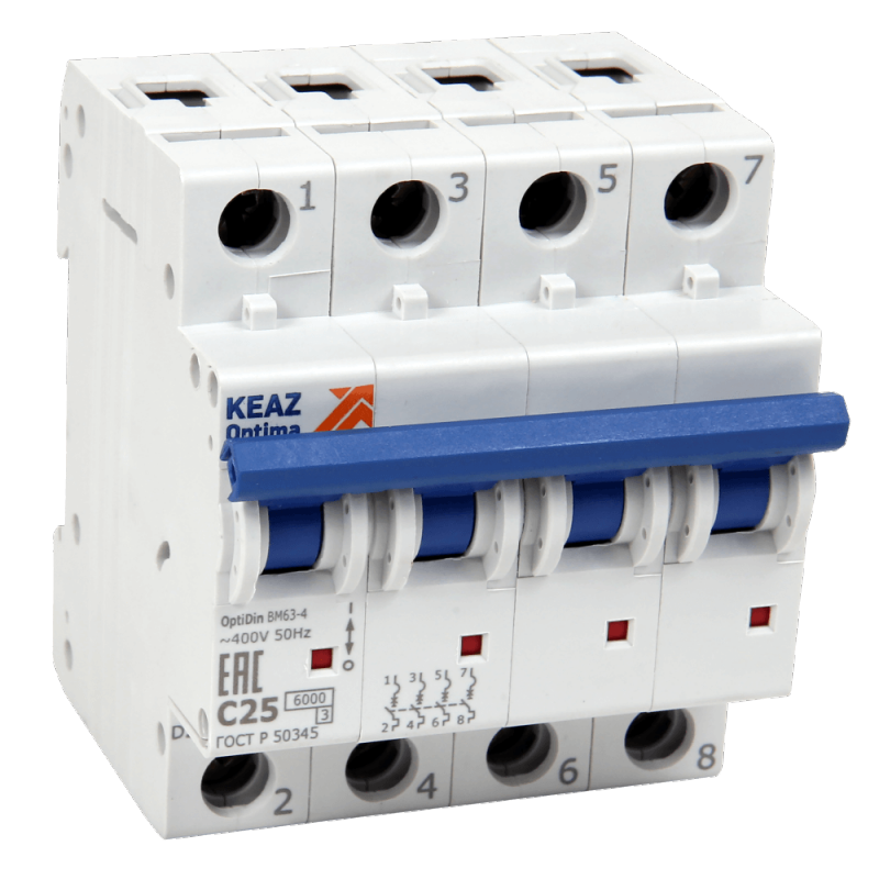 Автоматический выключатель OptiDin BM63-4C1-ОМ4-РЕГ | код 281606 | КЭАЗ