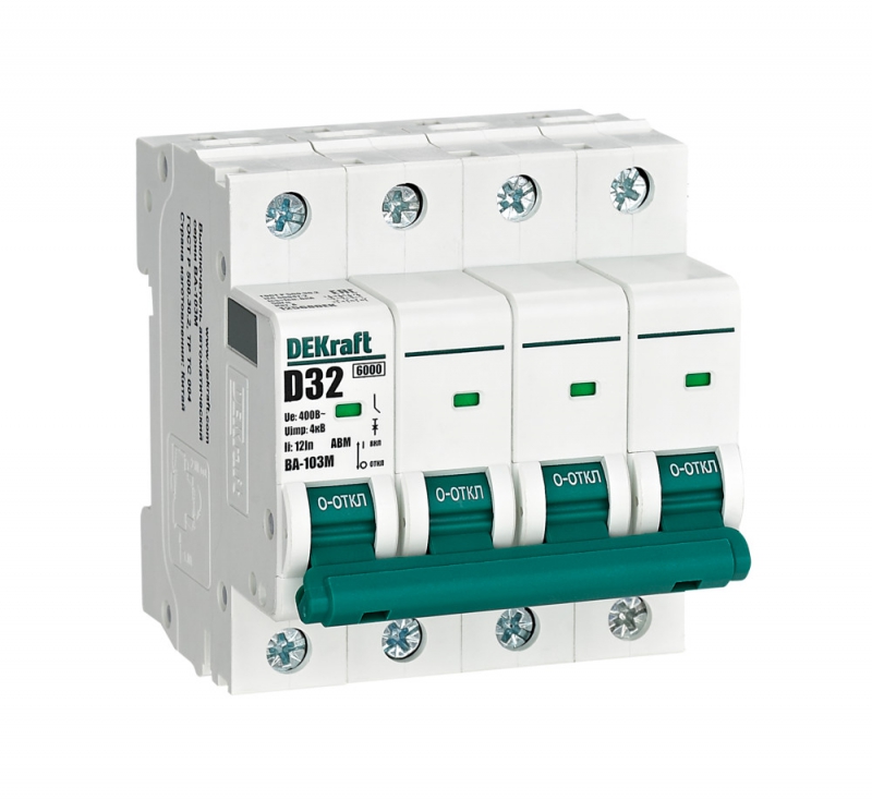 Авт. выкл. без теплозащиты 4P 32А х-ка D 6кА ВА-103M | код 12568DEK | DEKraft