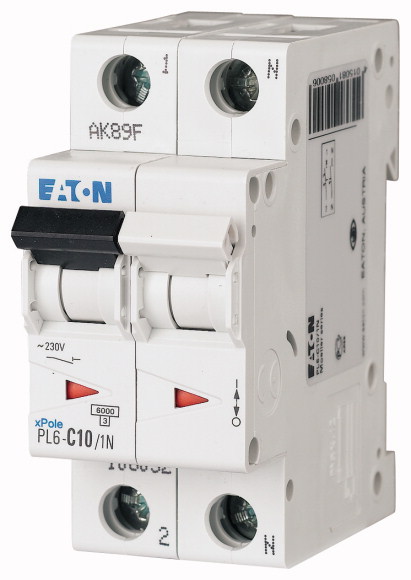 Автоматический выключатель 25А, кривая отключения B, 1+N полюс, откл. способность 6 кА, PL6-B25/1N | код 164909 | EATON