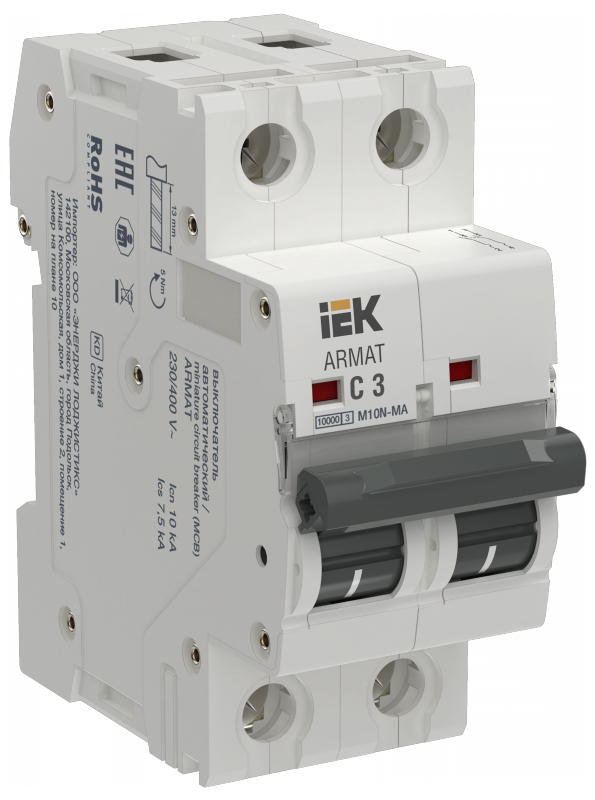 ARMAT Авт. выкл. без тепл. расц. M10N-MA 2P C 3А IEK | код AR-M10N-MA-2-C003 | IEK