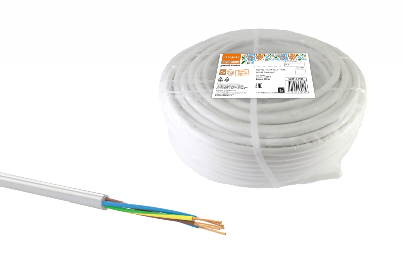 Провод ПВСмб 5х2.5 (бухта 100м) белый Народный ТРТС | код SQ0118-0916 | РЭМЗ ТМ