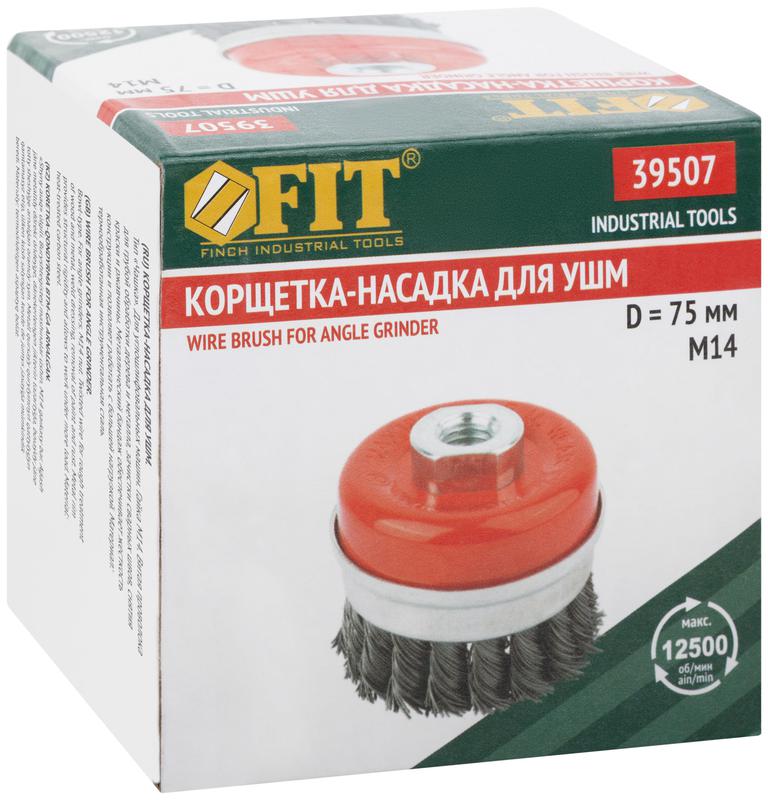 Корщетка-чашка гайка М14 стальная витая проволока с бандажом профи 75мм FIT 39507