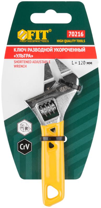 Ключ разводной "Ультра" CrV укороченный обточен. узкие губки шкала экстра увелич. захват 120мм (24мм) FIT 70216