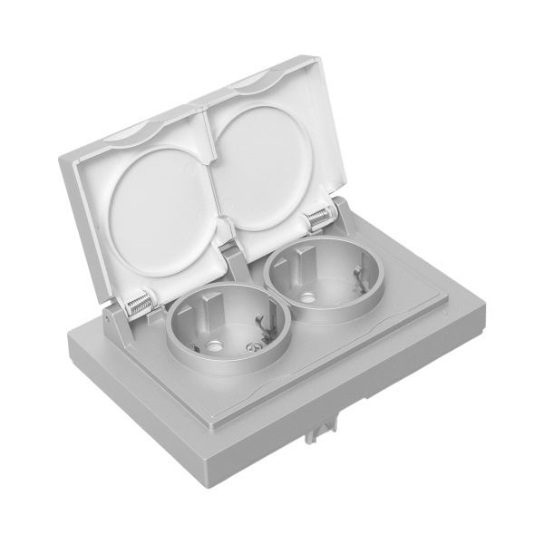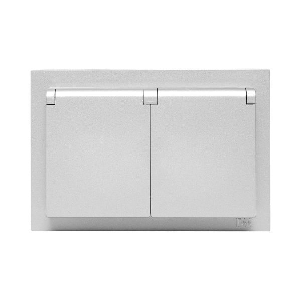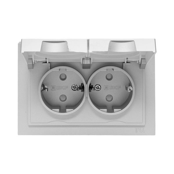 Розетка 2-м СП Эпика 16А IP44 с заземл. защ. шторки с рамкой с крышками механизм алюм. EKF UP1-SOA-211-44