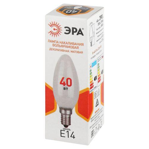 Лампа накаливания B36 40Вт свеча матовая E14/E14 230В Эра Б0066378